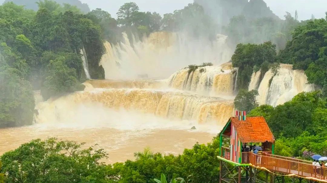 央視新聞報(bào)道!德天“夏日限定版”黃金瀑布震撼登場(chǎng)