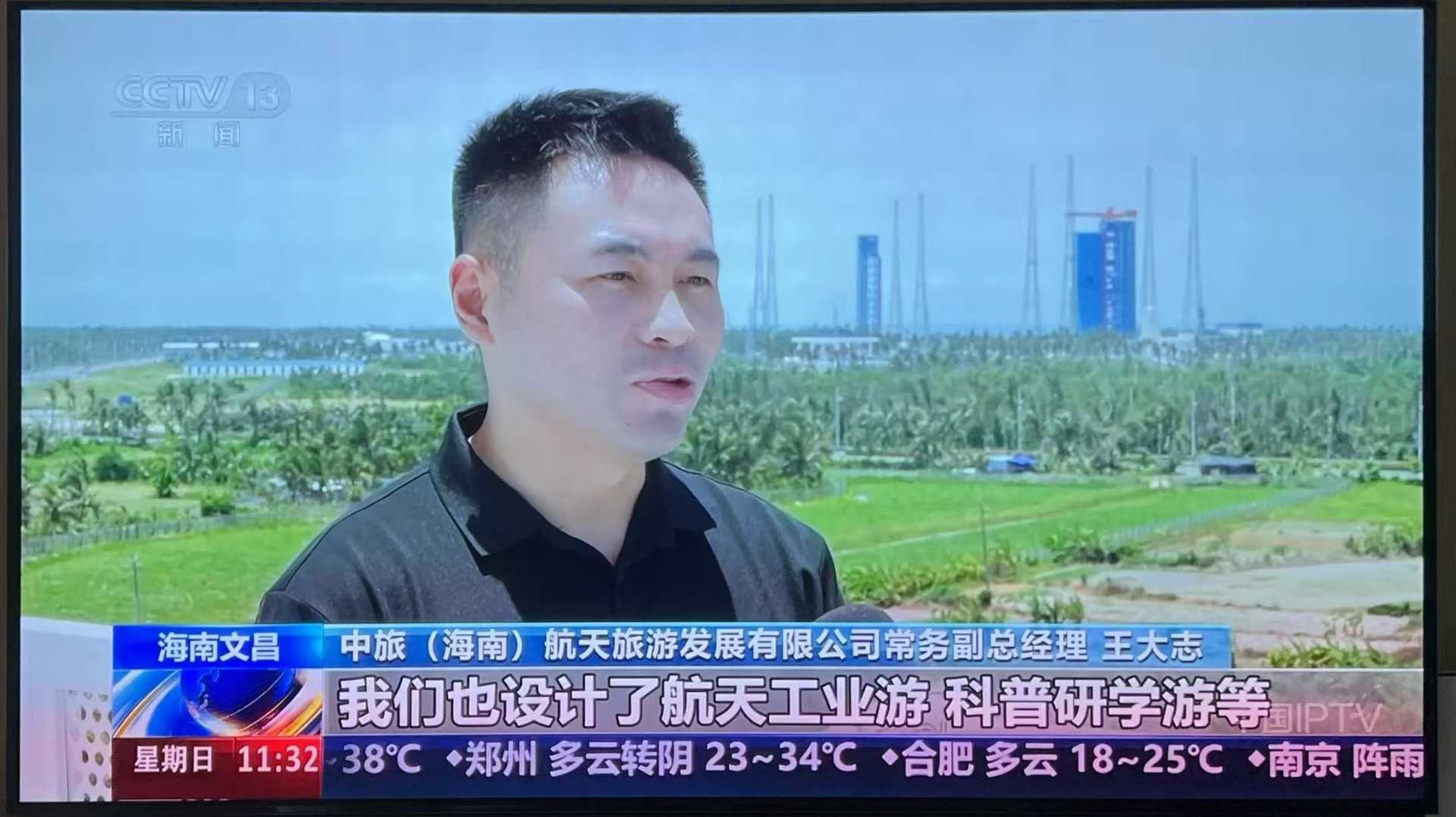 6月22日11:30,中央電視臺(tái)新聞?lì)l道CCTV-13《新聞直播間》在“周末去哪兒·航天文旅帶你飛”板塊報(bào)道《海南文昌“追火箭”成為新潮流 航天研學(xué)游持續(xù)升溫》。