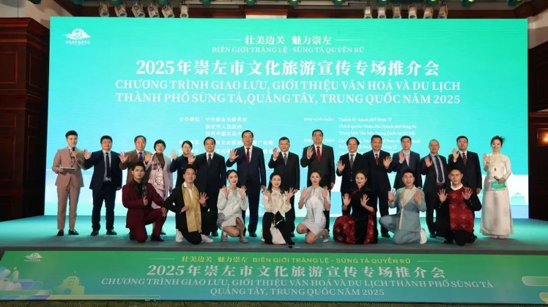 2月22日上午,“壯美邊關(guān) 魅力崇左——2025年崇左市文化旅游宣傳專場推介會”在越南河內(nèi)舉行?;顒佑芍泄渤缱笫形瘑T會、崇左市人民政府、河內(nèi)中國文化中心聯(lián)合主辦,越南文化體育與旅游部國際合作局協(xié)辦,旨在以務(wù)實舉措迅速貫徹落實2025年中國廣西與越南邊境四省黨委書記新春會晤活動精神,把實干爭先轉(zhuǎn)化為進(jìn)一步深化中越雙方文化旅游領(lǐng)域交流合作的具體行動,共同推動雙方文化旅游發(fā)展合作實現(xiàn)互惠共贏。