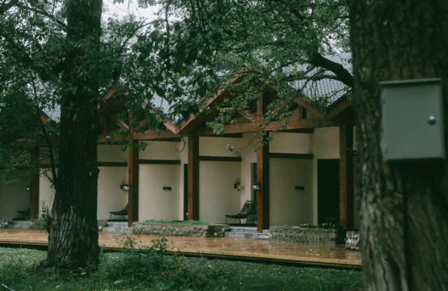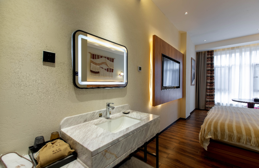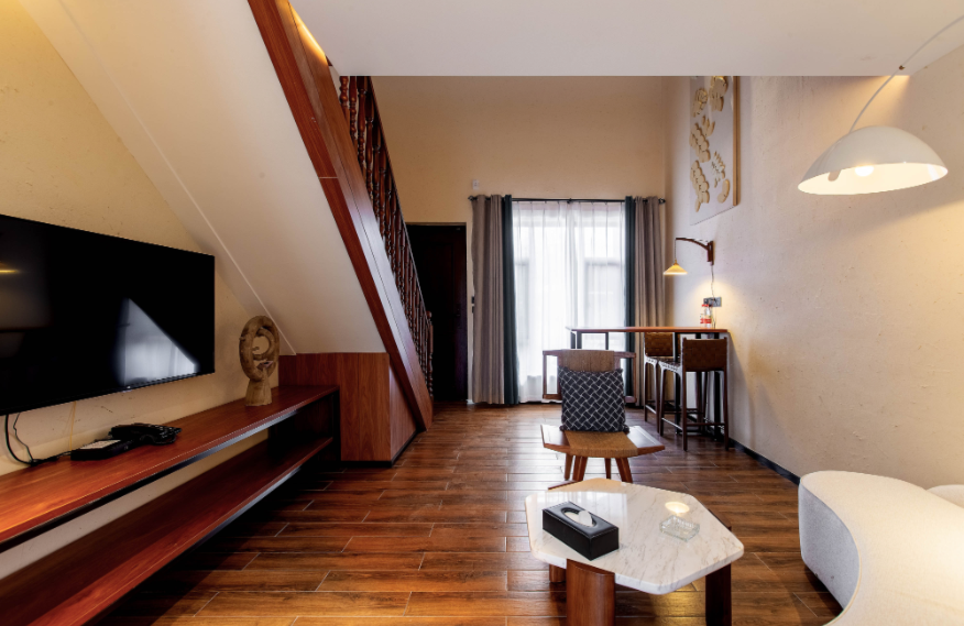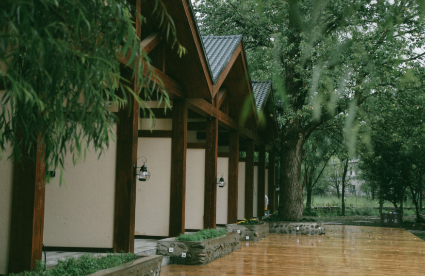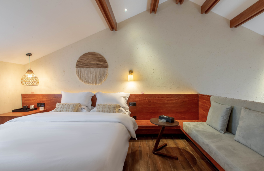 占地面積80畝,坐落于森林里,采用木屋、石頭、玻璃等主材建造,立志打造“在自然里長出的建筑”,室內室外一步一景。 酒店一期客房數(shù)量55間,其中普通標準間32間,大床房10間,家庭房2間,庭院房11間,餐廳面積300㎡,客房具有面積大,空間視野好的特點,按照準五星級生態(tài)園林酒店的標準配備高檔、精致家具及潔具,裝飾裝潢強調統(tǒng)一中顯個性,力求舒適、溫馨、實用。
